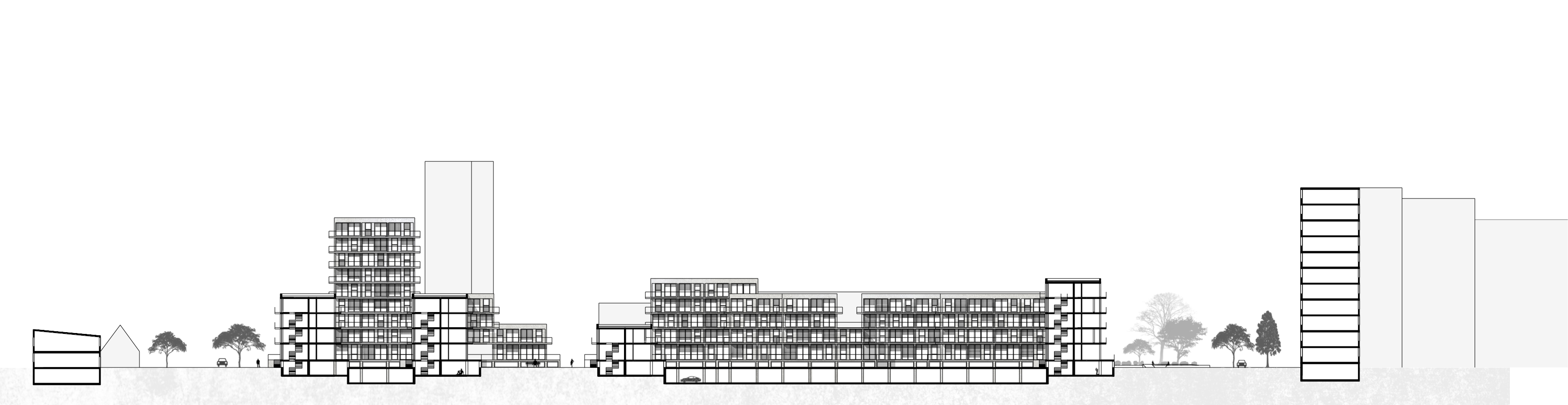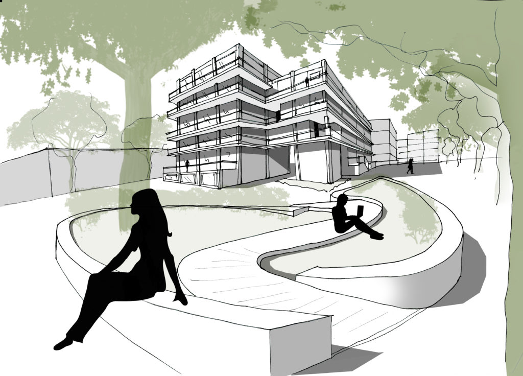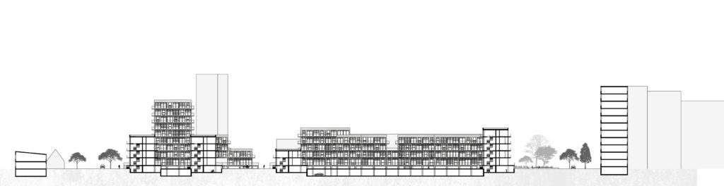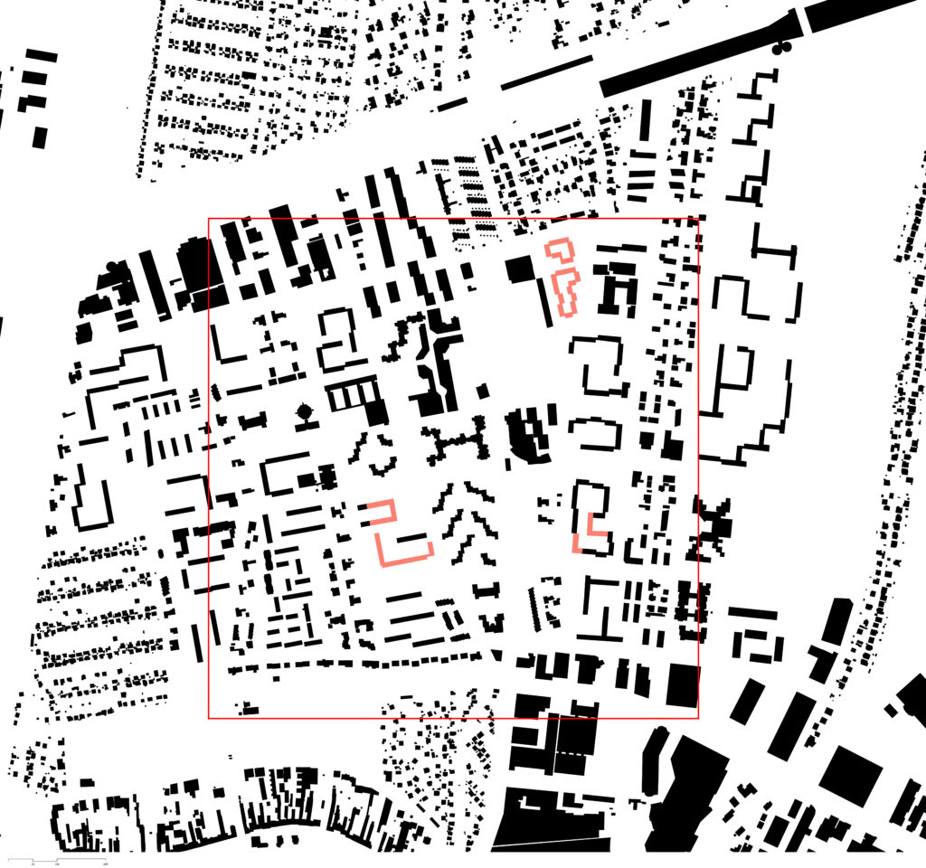Um der enormen Weitläufigkeit des Gebiets entgegenzuwirken muss nachverdichtet werden. Durch weitere Bebauung können Nischen geschaffen werden, in denen sich Menschen gerne aufhalten. Außerdem wird eine klarere Definition der räumlichen Grenzen erreicht. Die Neubebauung basiert auf einem 5 m x 5 m Raster.