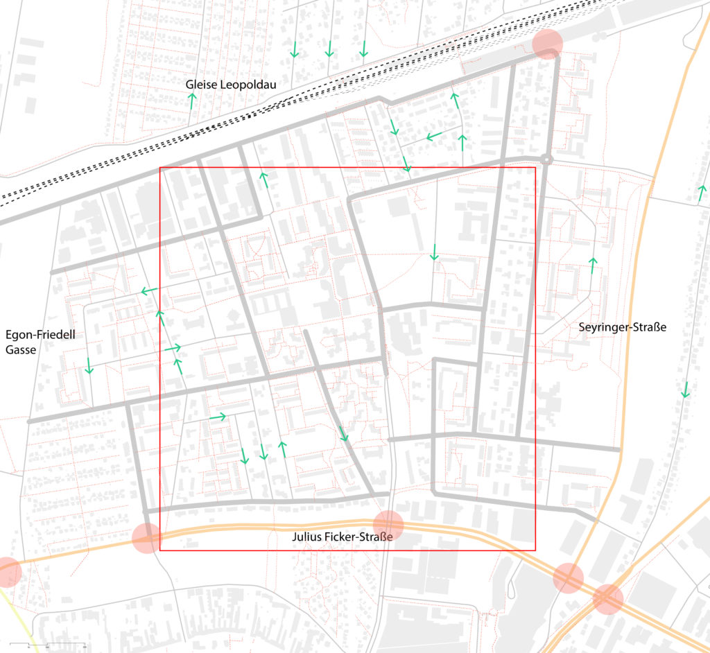 Damit die Nachverdichtung nicht zu einer Überbelastung des Verkehrsnetzes führt, müssen mehr Durchwegungen innerhalb des Quartiers geschaffen werden. Dies gelingt uns anhand von Shared Spaces, die nicht nur die Vernetzung vebessern, sondern auch die Barrierefreiheit quartiersweit verbessern.